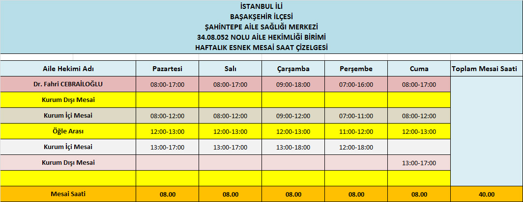 Çalışma Saatlerimiz